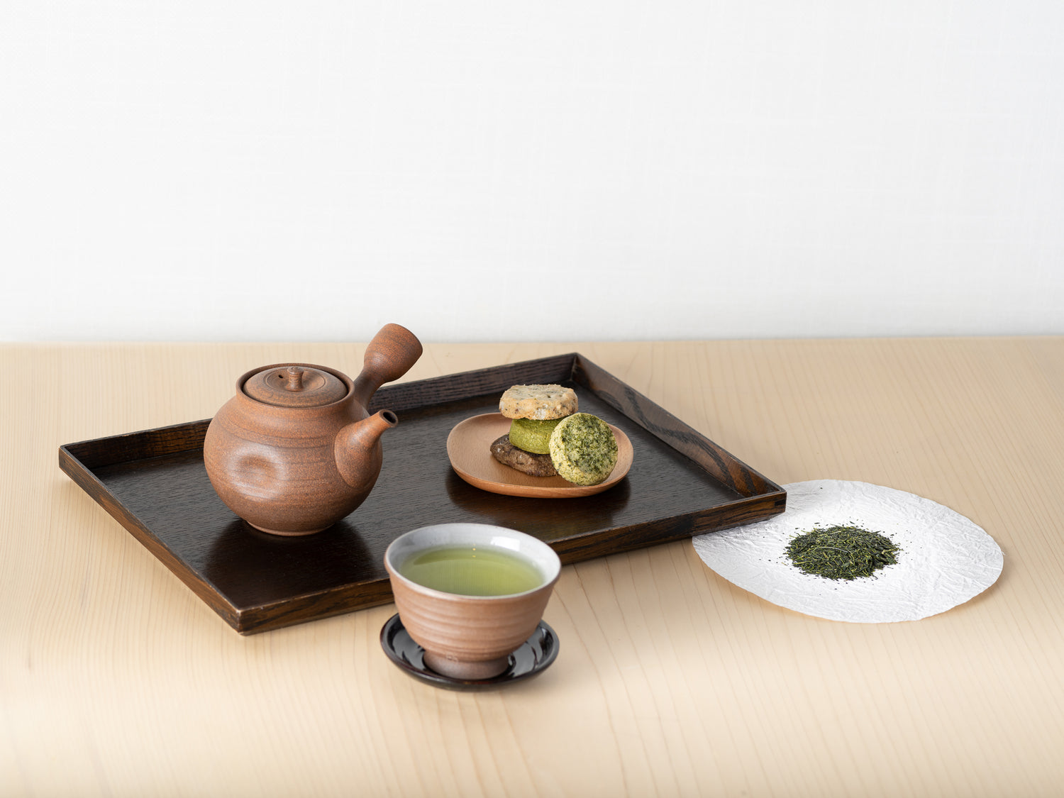 On the ground floor is the sales and tasting area. You will discover a simple decor, furnished with a large Japanese cypress counter and adorned with countless bamboo stalks suspended from the ceiling. On this counter is a large cast iron kettle. Customers will taste our range of authentic green teas, served in refined tableware, as well as our small tea cakes. We also offer tea services and all green tea accessories.