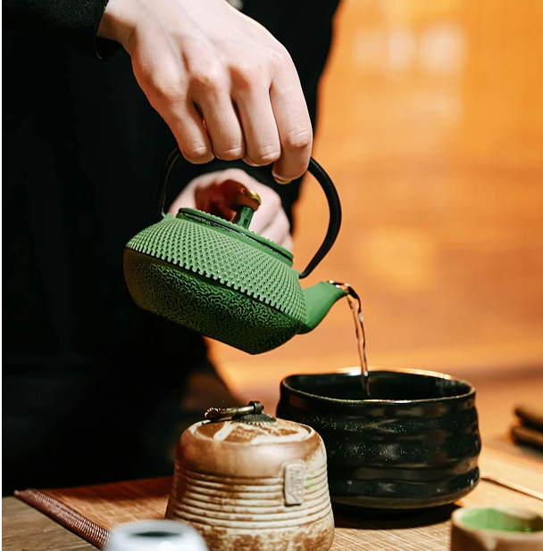The Japanese teapot is a beautiful blend of functionality and artistic craftsmanship. It typically has a handle for easy pouring and a spout to control the flow of tea. The lid fits snugly to prevent tea leaves from escaping while pouring.