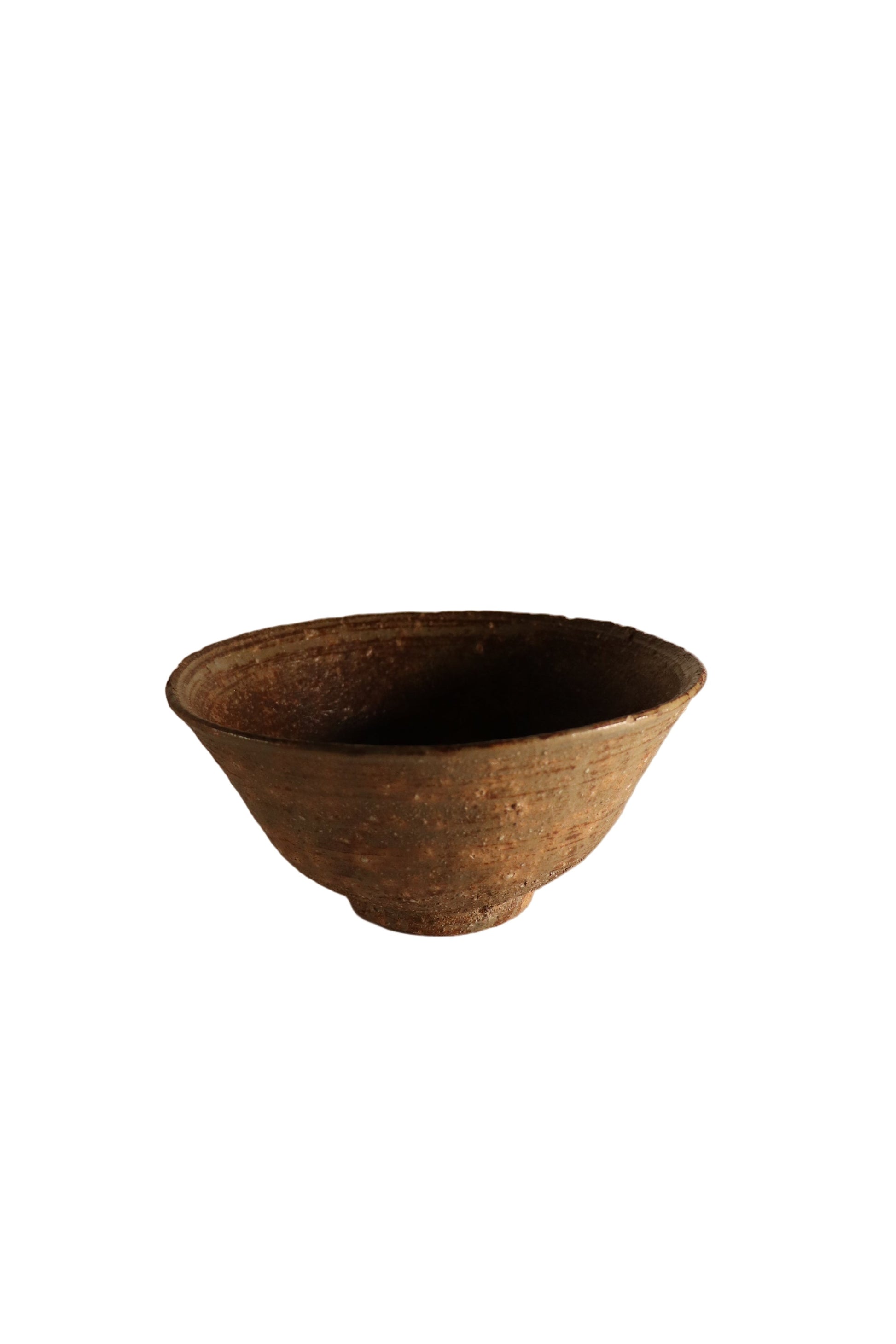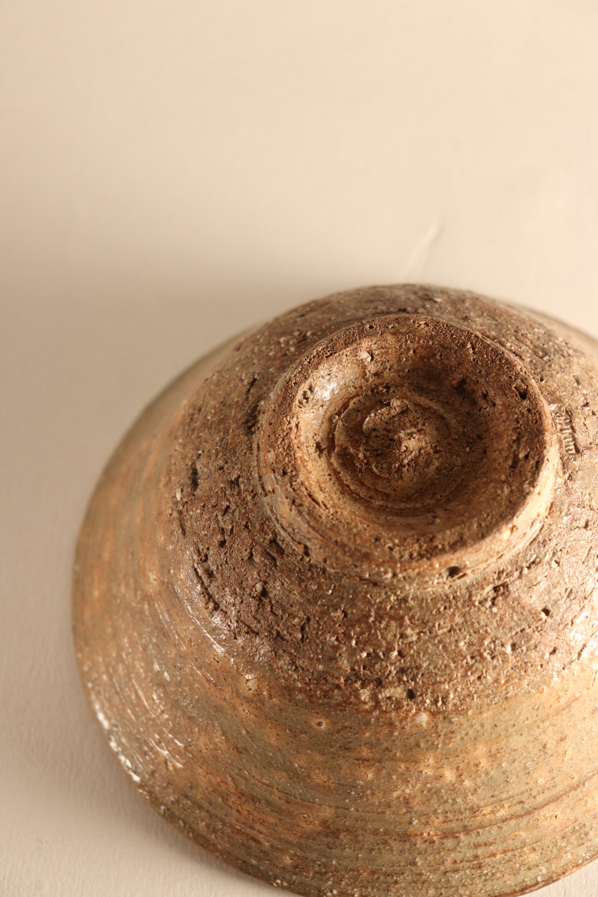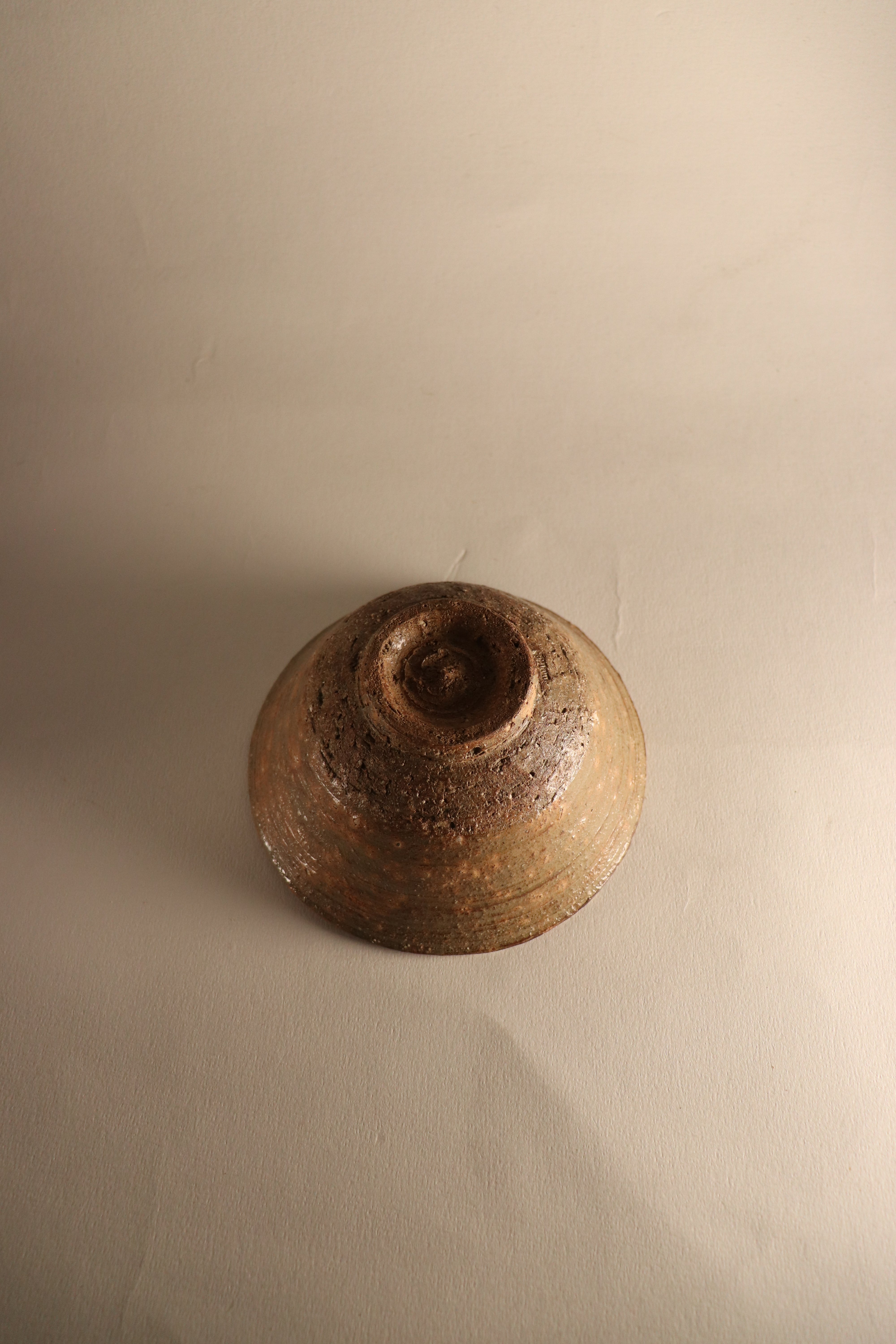 The Irobo style, originating in Korea’s Joseon dynasty, is known for its sandy clay body and rough glaze texture, where the firing process creates natural pits and uneven surfaces — features admired for their wild and powerful presence. The bowl’s broad foot and gently inward-curving lip make it both visually balanced and pleasant to handle, qualities prized in tea ceremony vessels.
