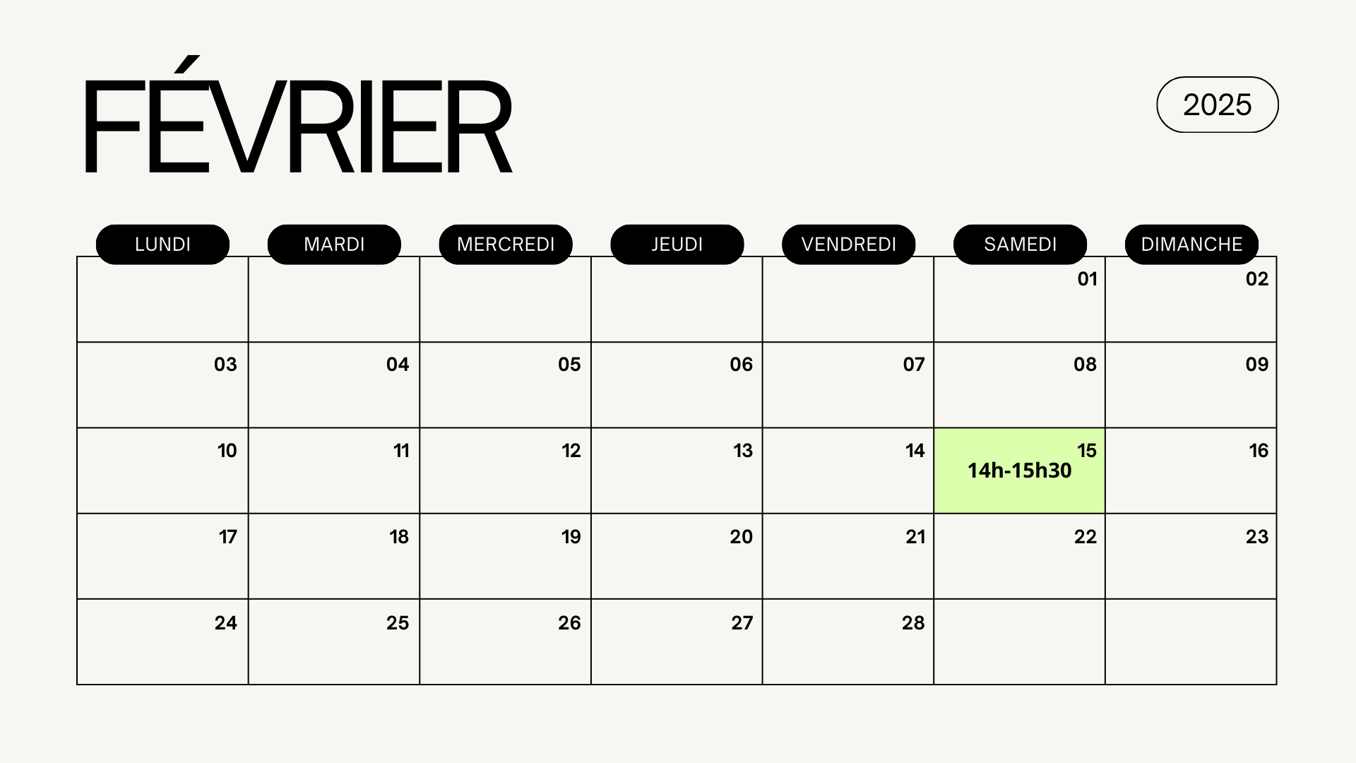 Le samedi 15 février 14h-15h30