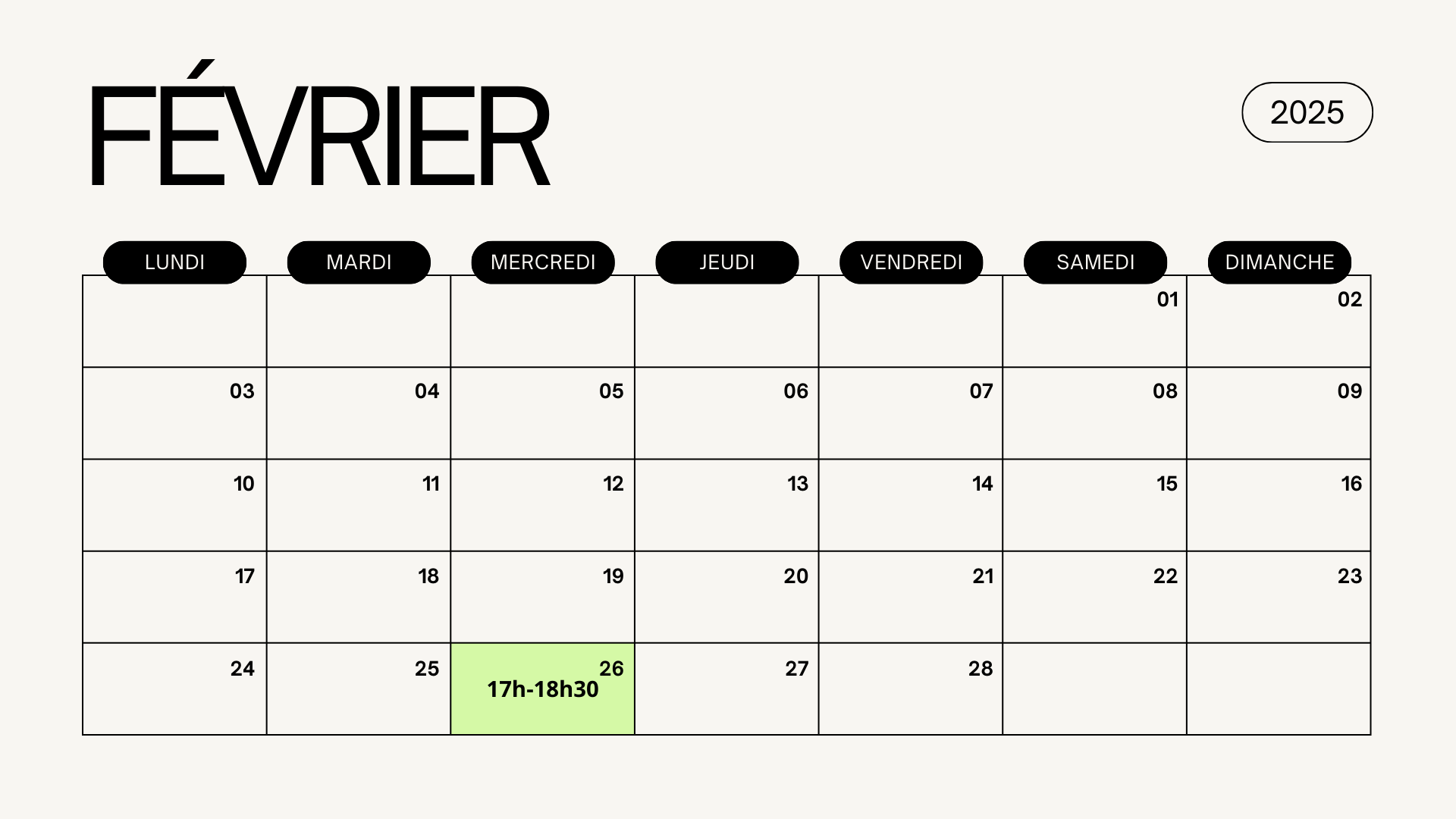 Le mercredi 26 février 17h-18h30