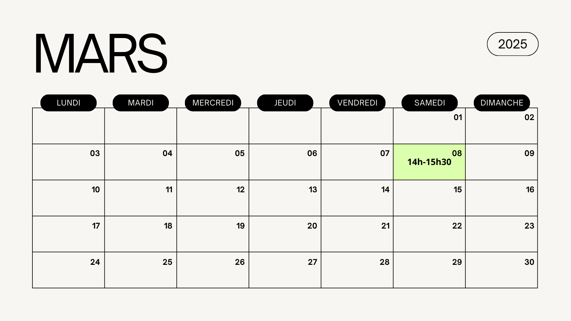 Le samedi 8 mars 14h-15h30