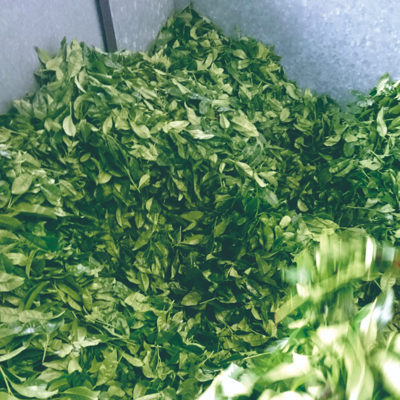 Après la première cueillette à la main, on collecte les feuilles de thé à la machine, jusqu’à une certaine hauteur du théier. On dénomme cette production « thé de première catégorie ».
