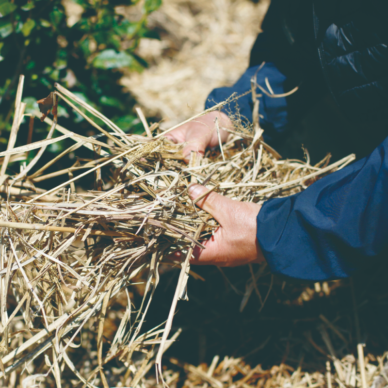 La culture du thé dans le village dans le ciel, en plus de ne pas utiliser de pesticide, présente une autre caractéristique : le chagusaba. Cette pratique consiste à faucher les hautes herbes susuki qui se fanent à l’automne puis à les déposer sur le sol entre les rangs de théiers.