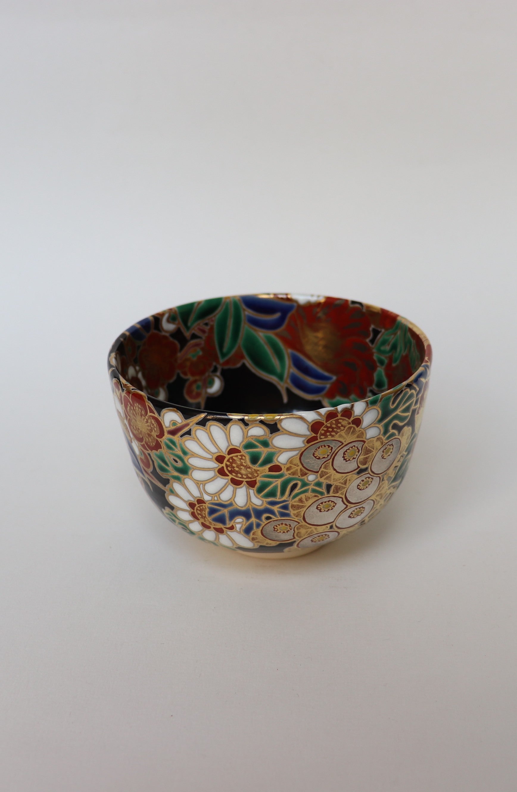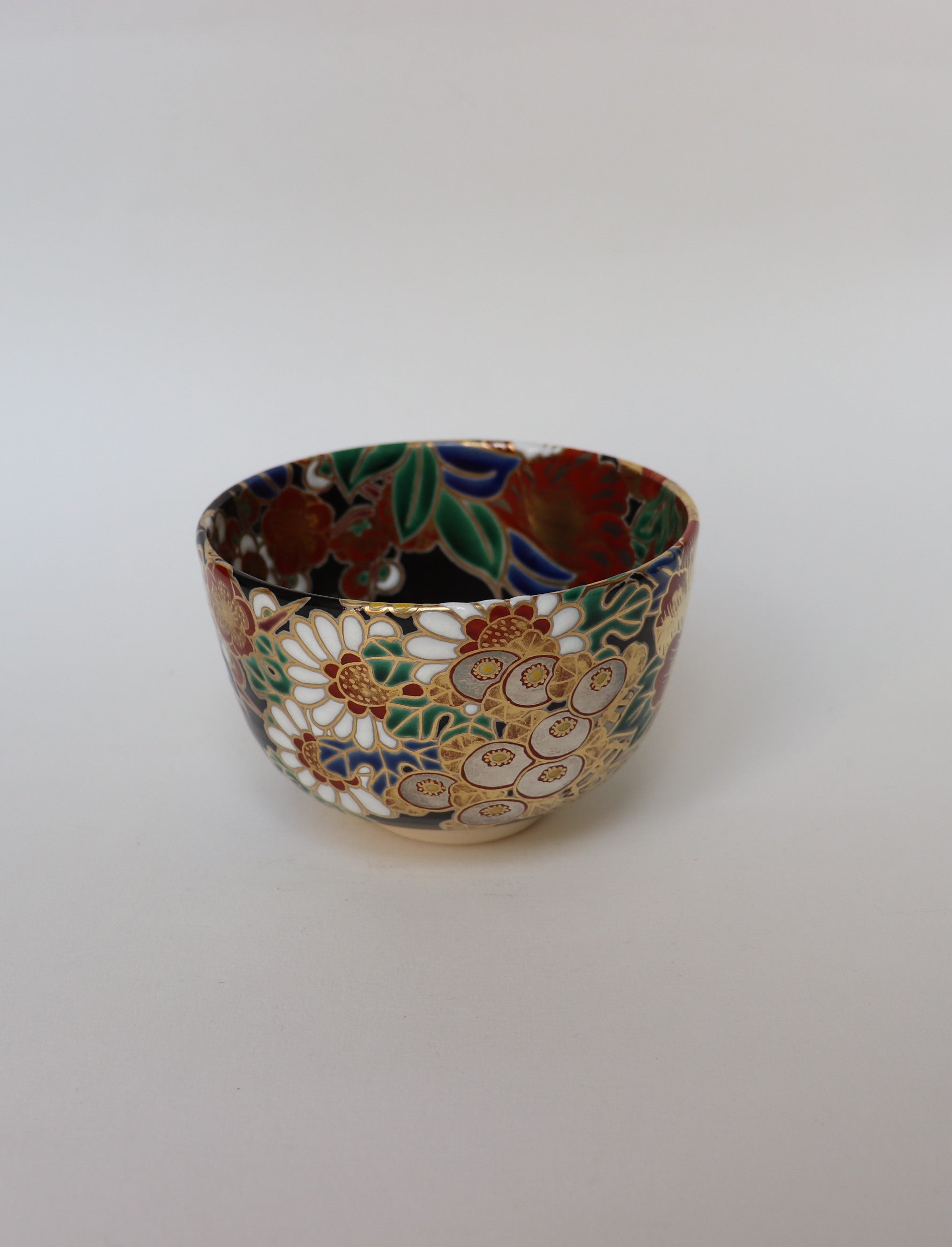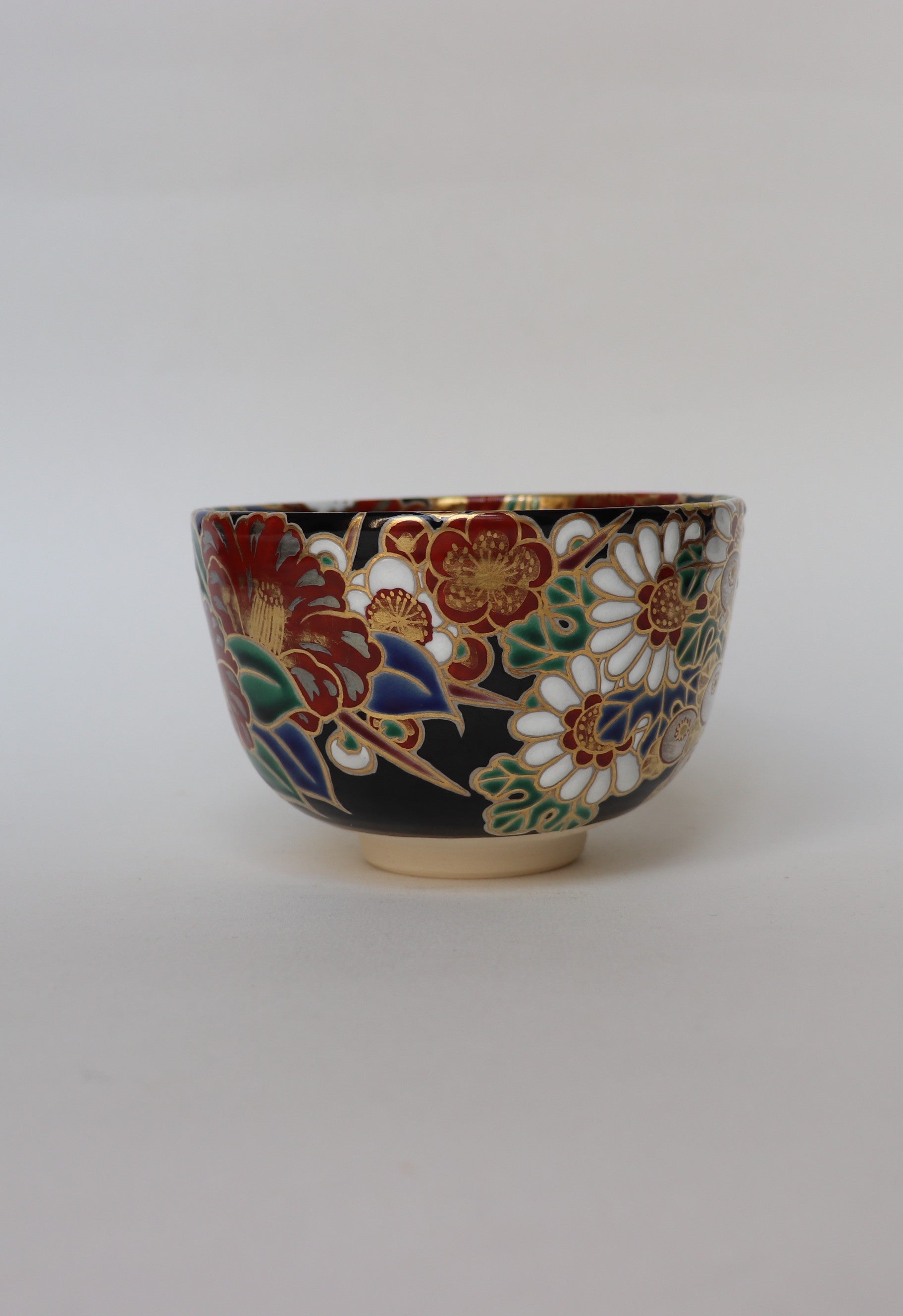 Le motif Shikikusabana-mon (四季草花文) — littéralement « fleurs et herbes des quatre saisons » — illustre des végétaux caractéristiques de chaque période de l’année : prunier et cerisier au printemps, iris et chrysanthèmes en été et en automne, bambou ou pin en hiver. Ce motif, fréquemment utilisé dans les textiles de cérémonie et les objets d’art, exprime la beauté du cycle naturel et l’harmonie entre les saisons. Dans ce bol, les fleurs délicatement peintes évoquent la continuité du temps et la sensibilité propre à la voie du thé.